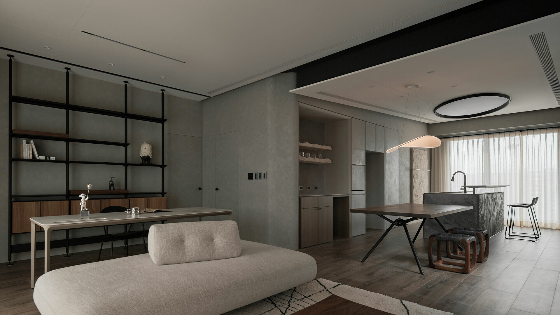 空間以霽 / Soft Clarity 為核心精神——透過柔和光線、灰階材質與純淨線條,使家的每個角落都像是呼吸著雨後的寧靜。