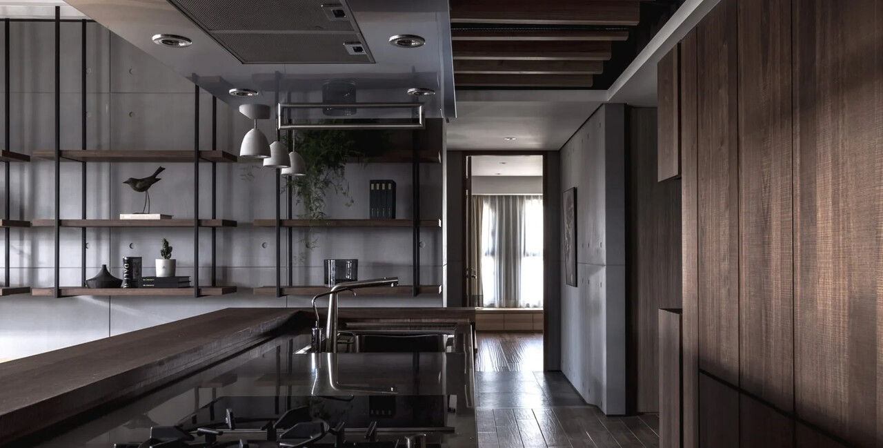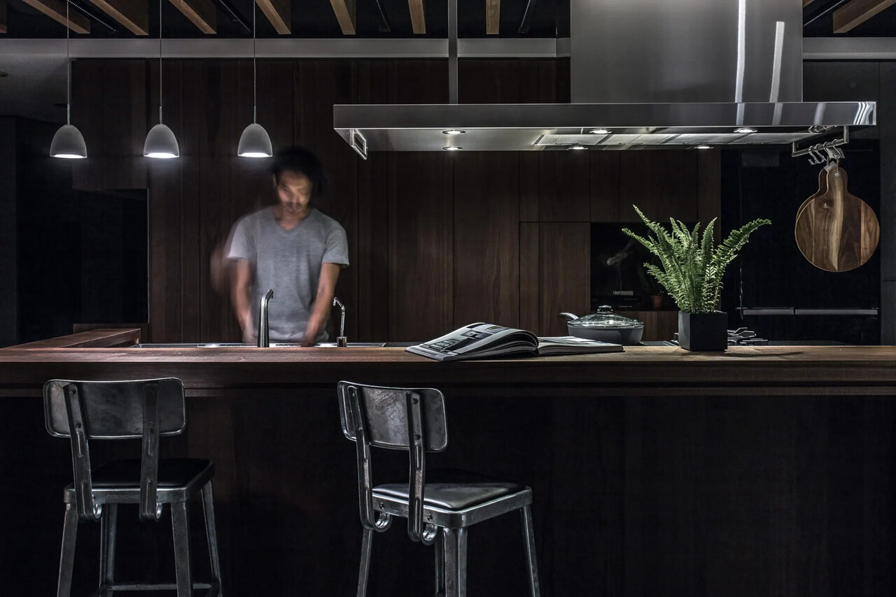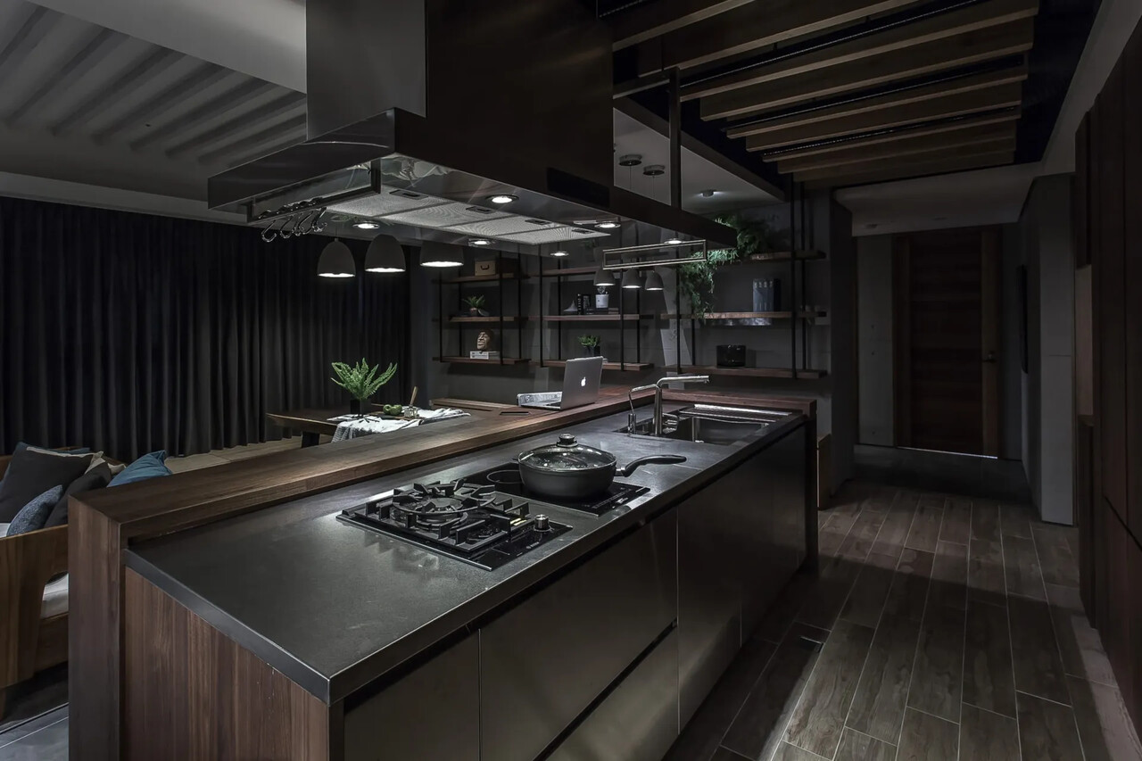 除了料理輕食的中島吧台,側邊另規劃了中式熱炒廚房,