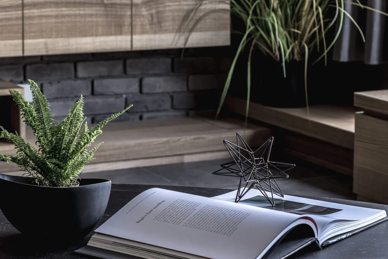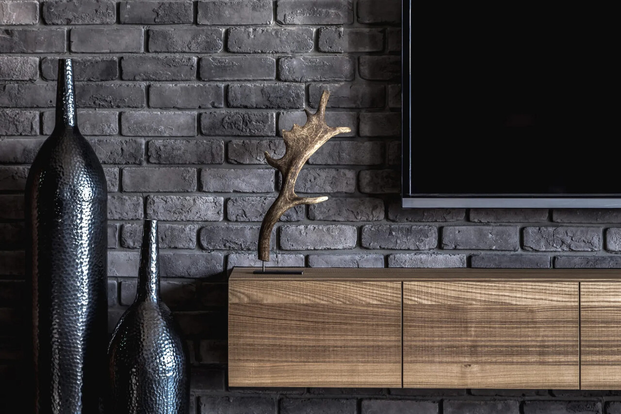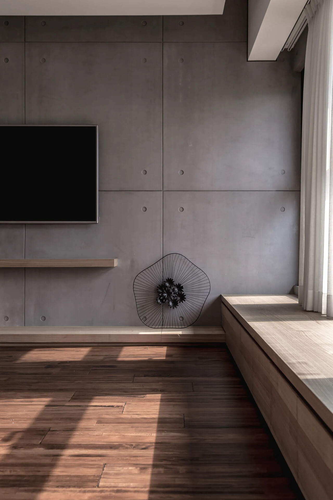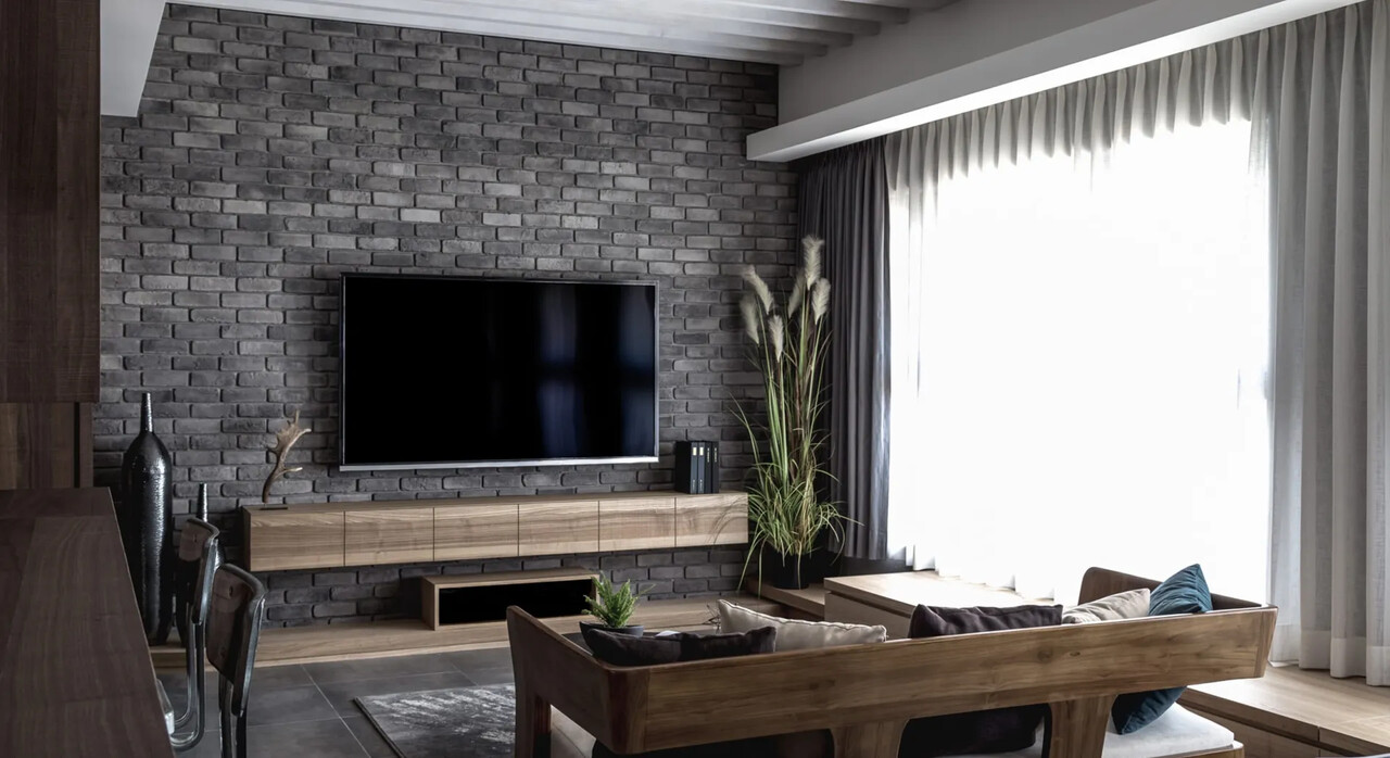 玄關的鞋櫃中間鏤空脫開,讓視覺穿透性放大了空間感;