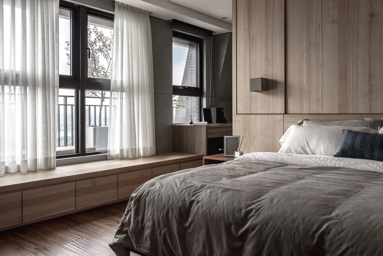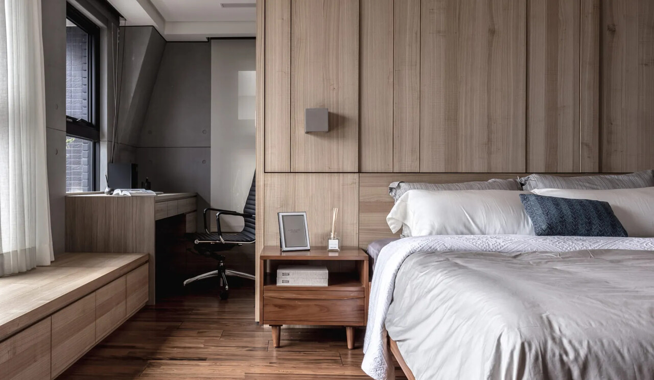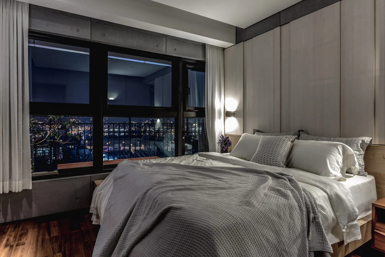 而次臥則是透過飯店式的連通門與書房連通,平時打開可連通成一間勝過主臥的大房;