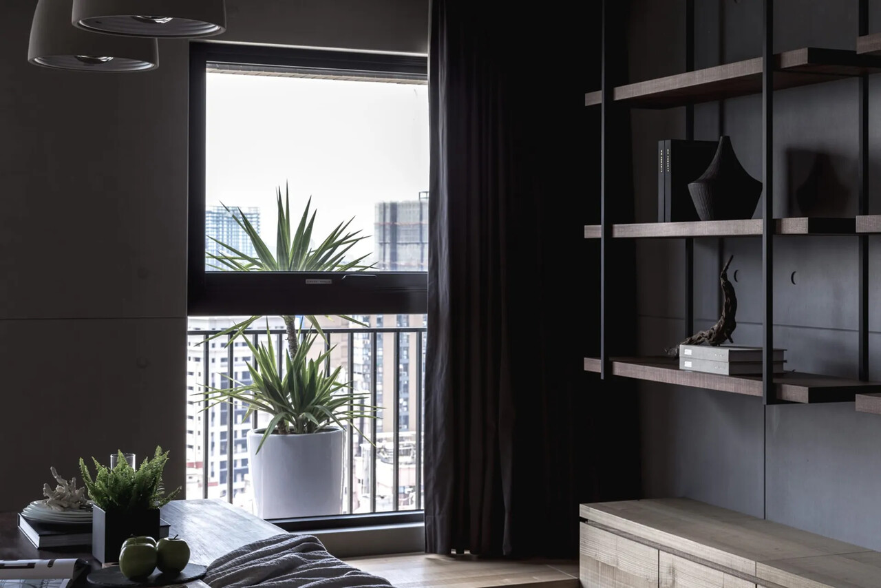 客餐廳的窗邊規劃可供坐臥的矮櫃,即使開設2、30人的派對也綽有餘裕。