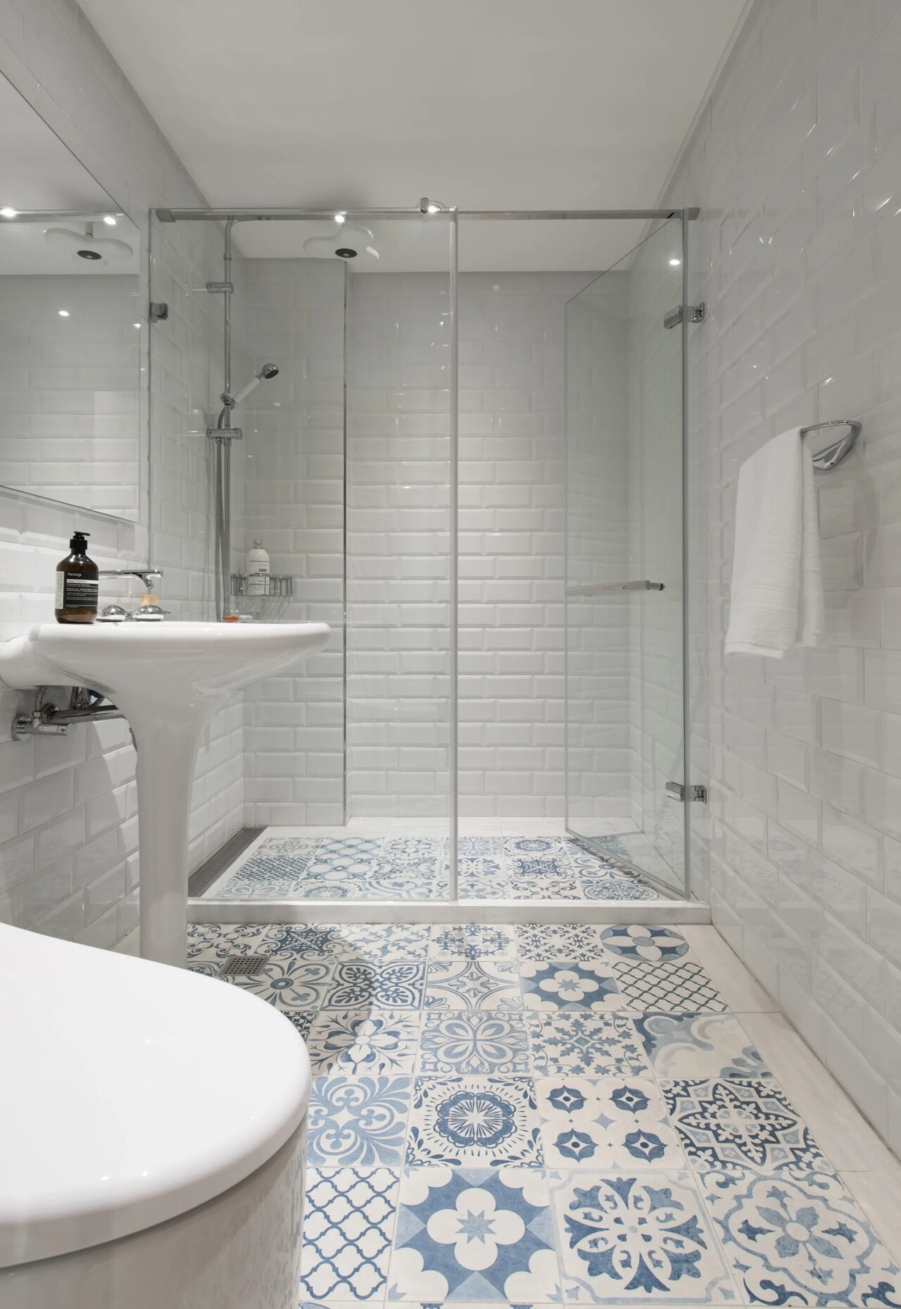材質上,以馬牙條在地面分割出洩水的溝縫並且延續到圍牆立面,
