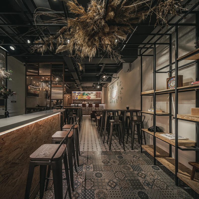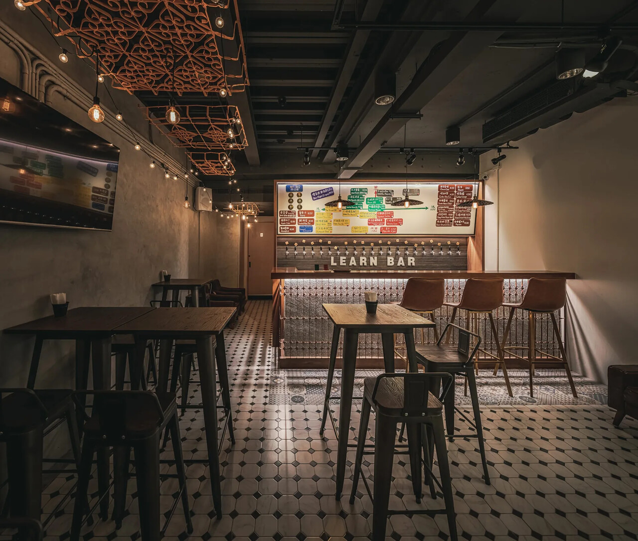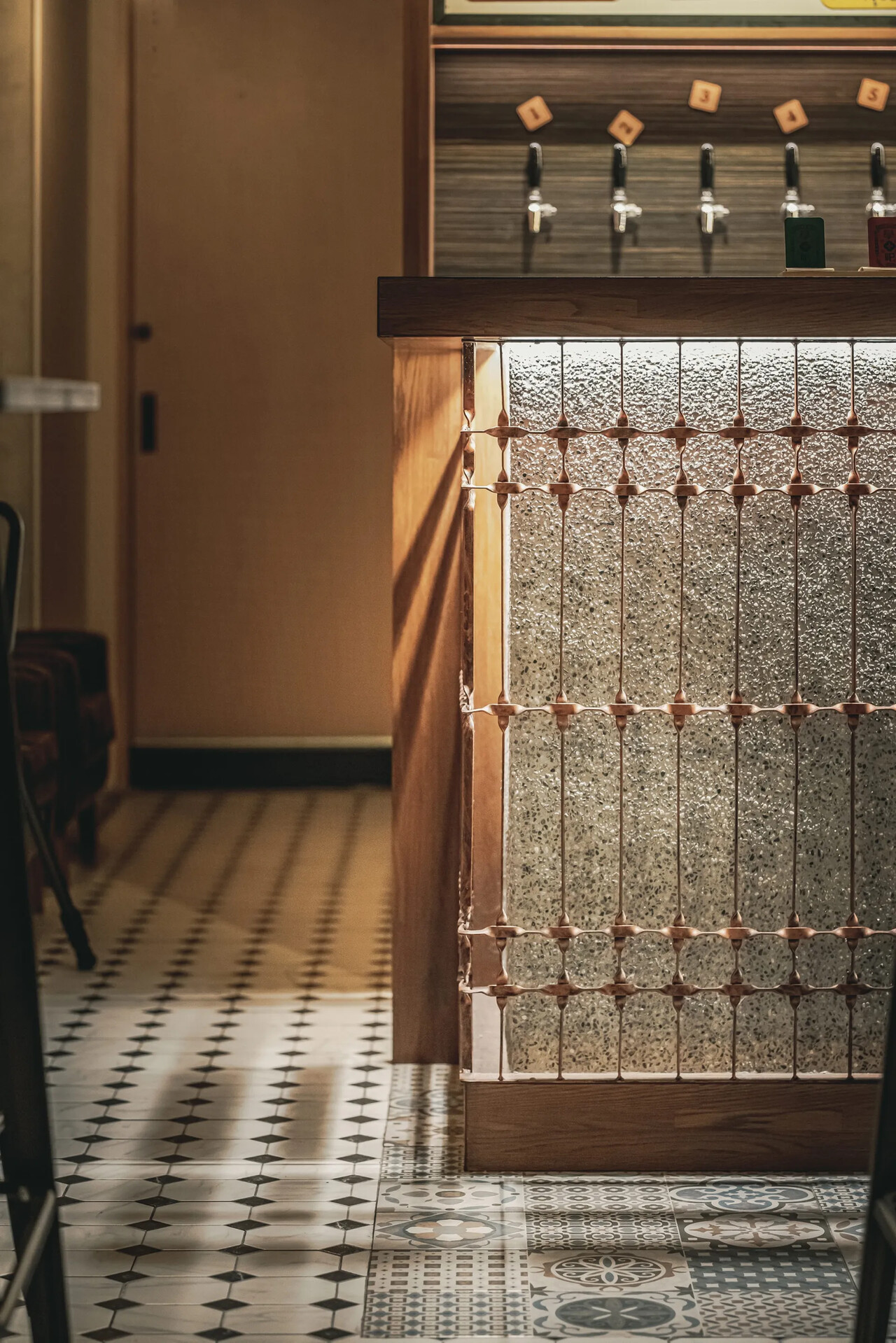 以各種台灣在地元素、新舊建材以及插畫老師手繪各地代表食材,打造由裡到外具有本土精神的台灣精釀啤酒吧