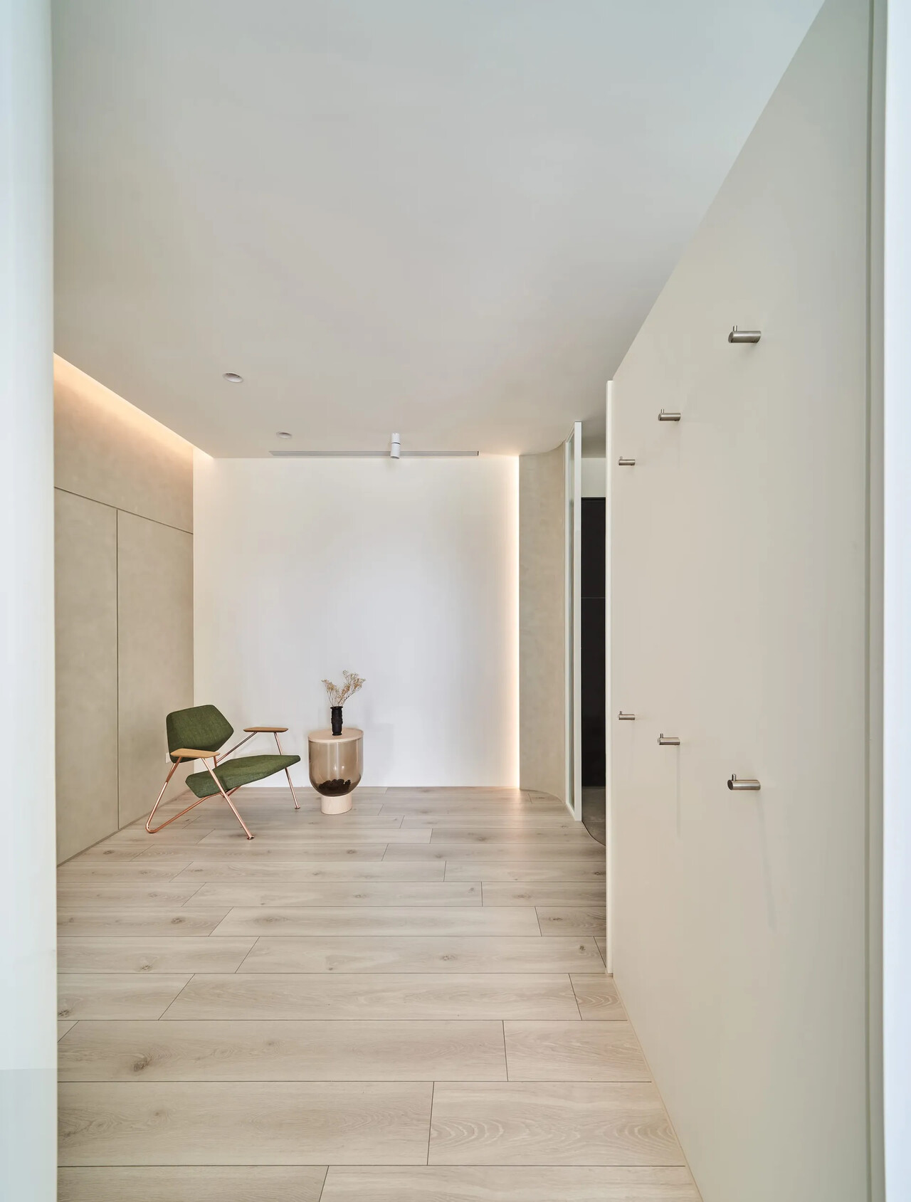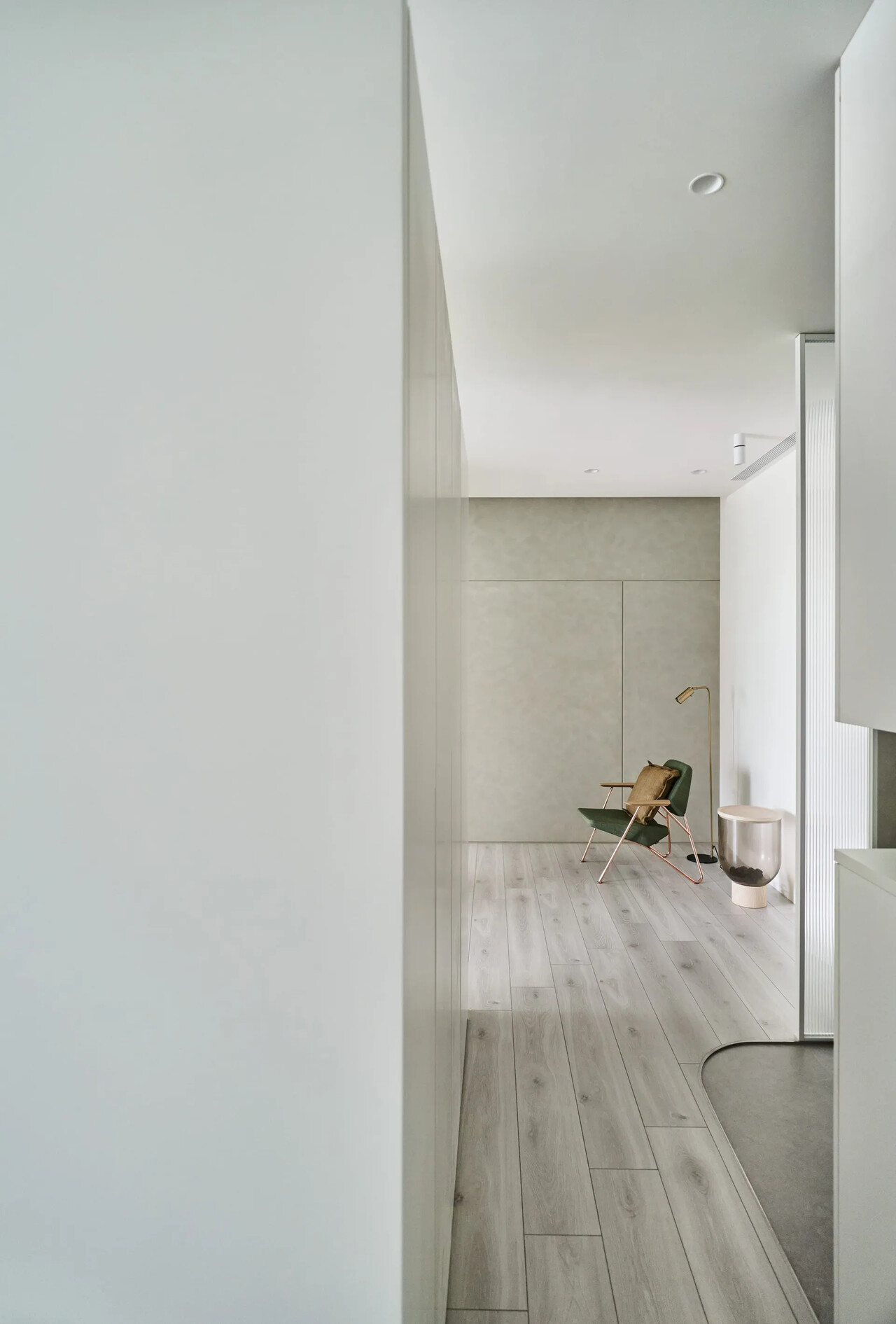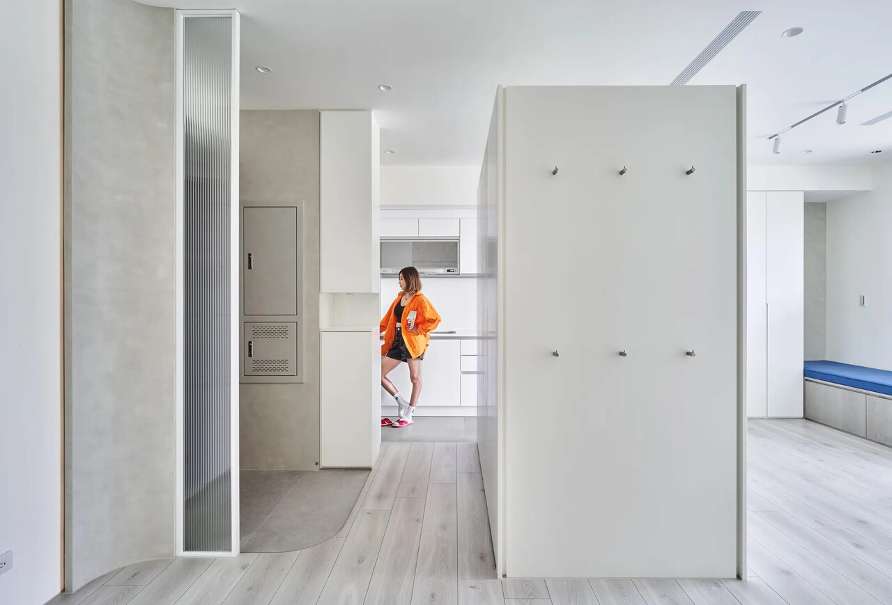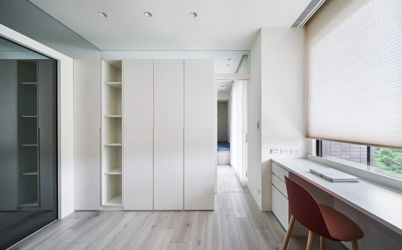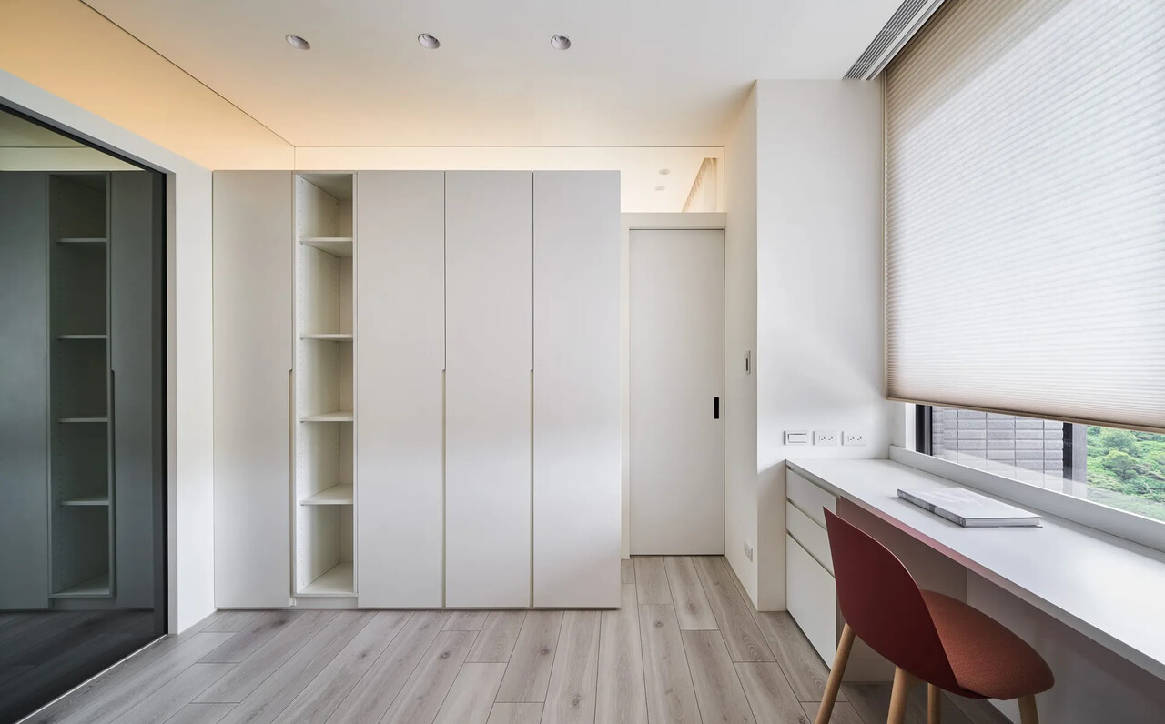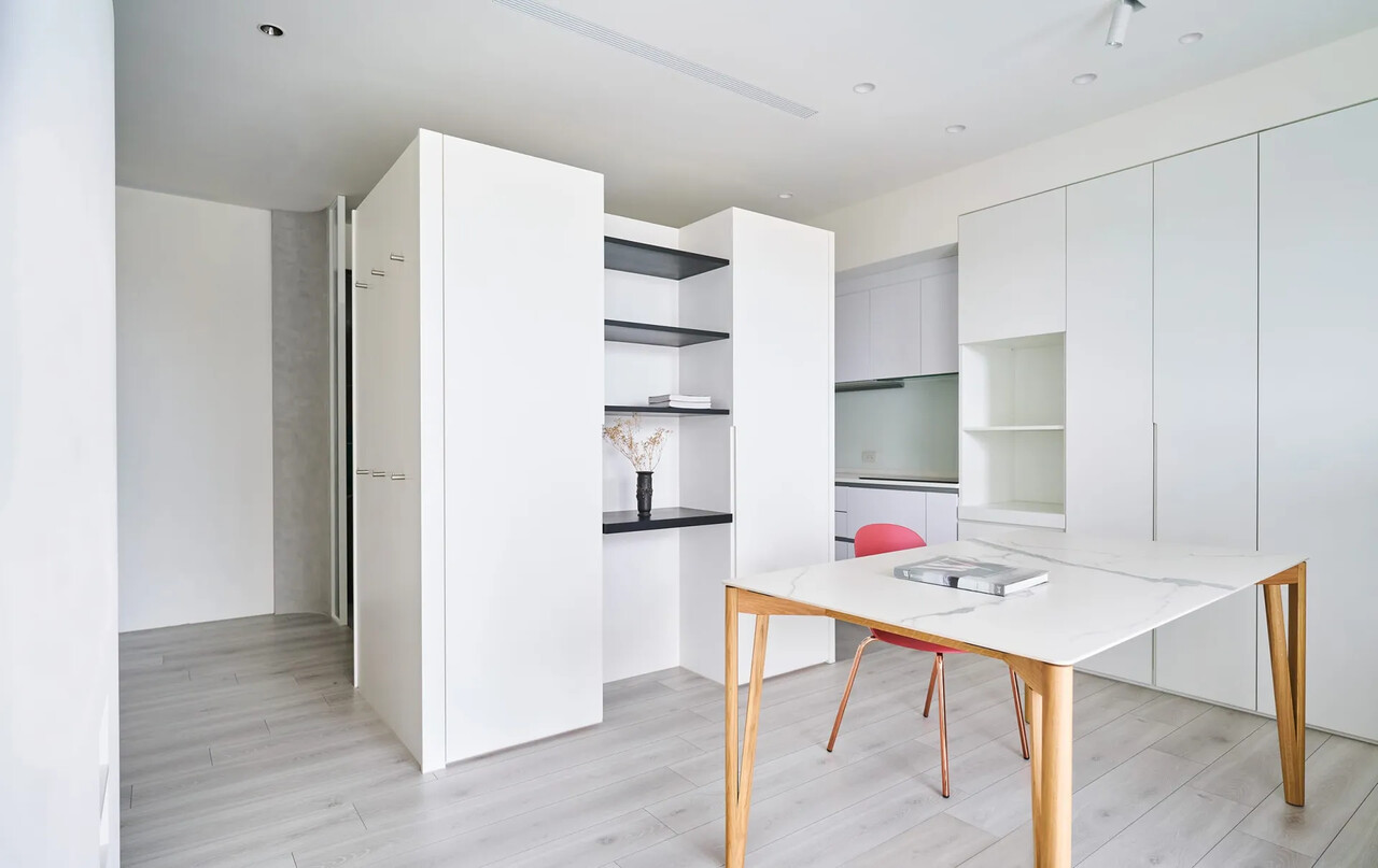 小坪數的空間,在視覺上大量留白,讓空間中的量體整合和諧
