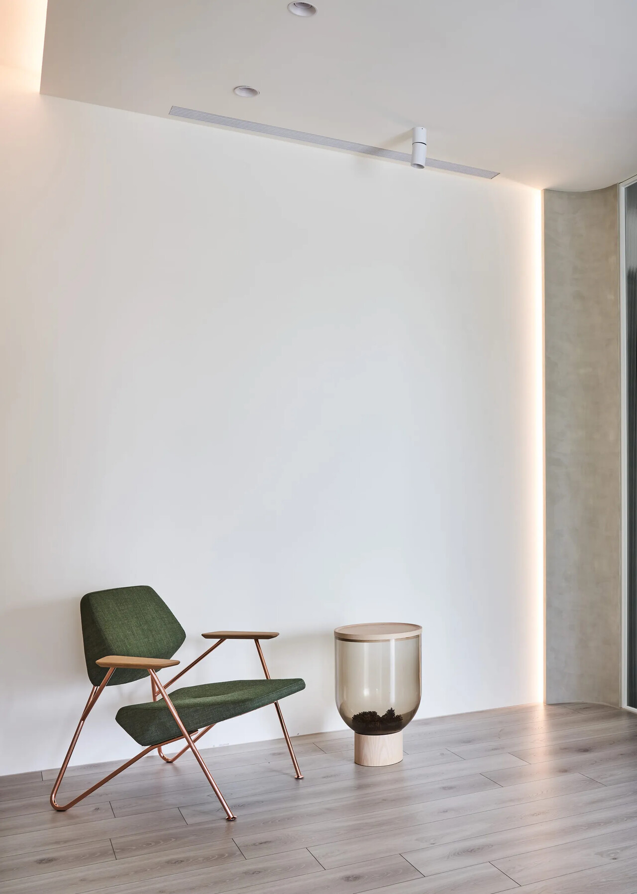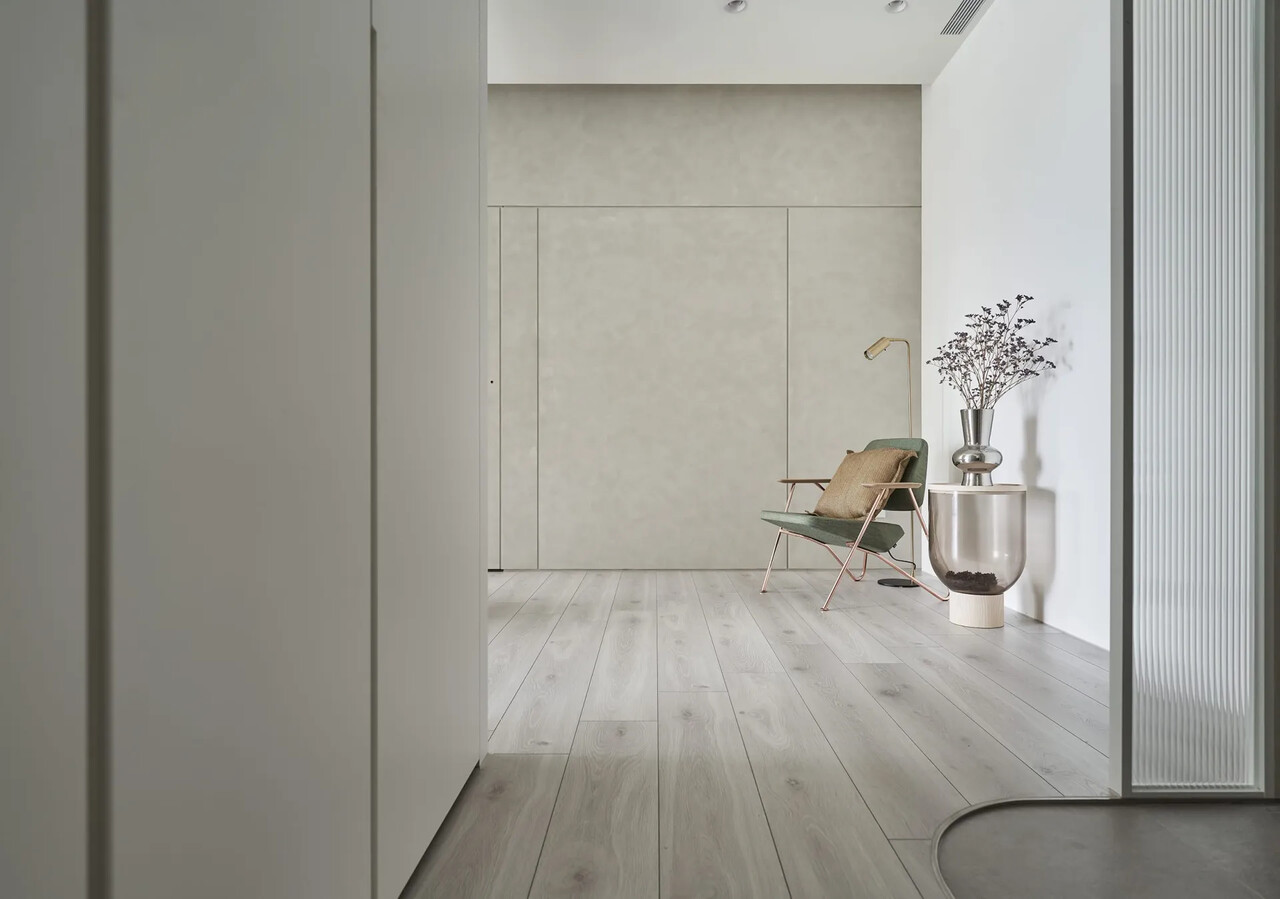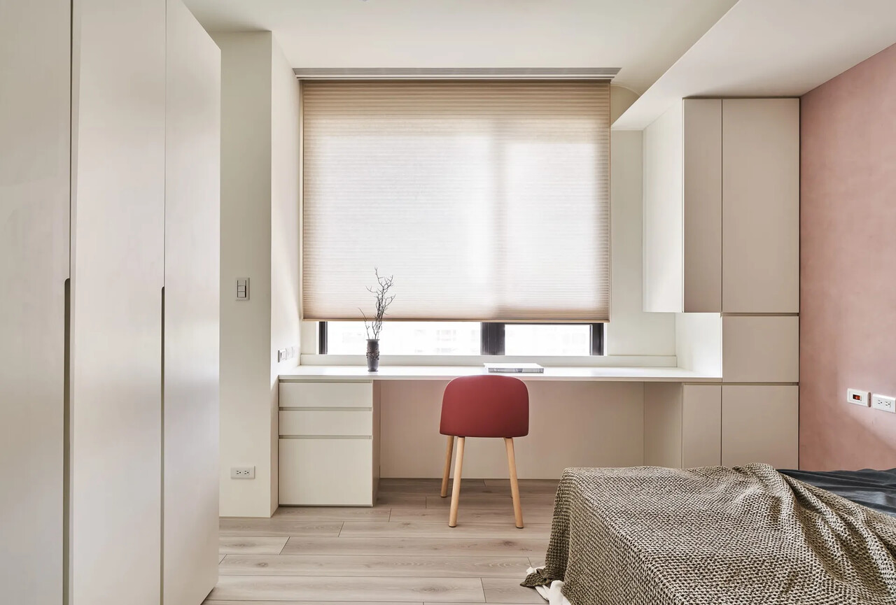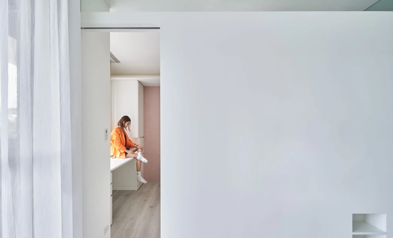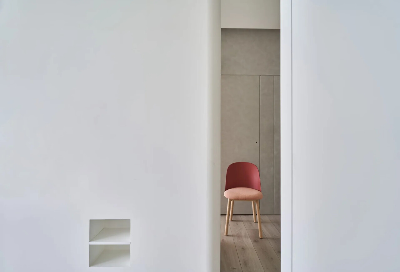 小坪數的空間,在視覺上大量留白,讓空間中的量體整合和諧